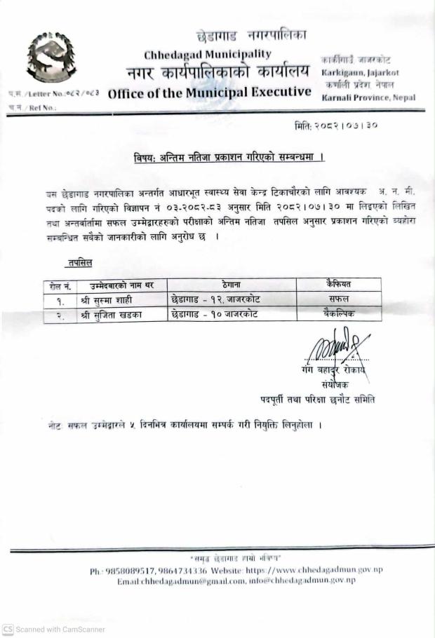 अन्तिम नतिजा प्रकाशन सम्बन्धमा।