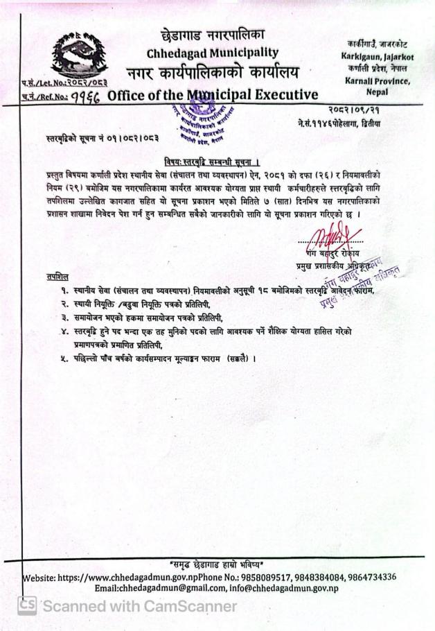 स्तरबृद्धि सम्बन्धि सूचना।