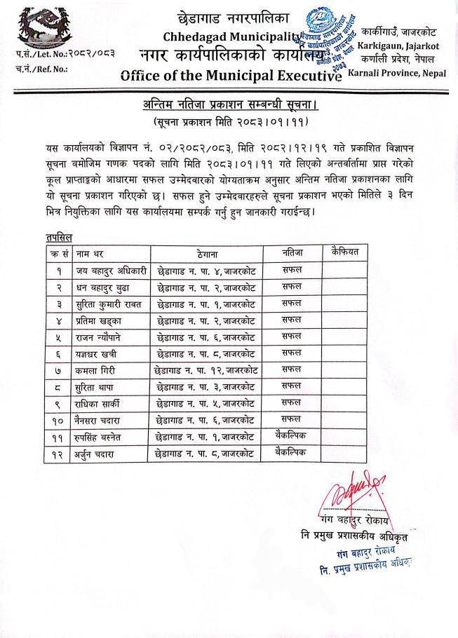 » गणक पदको अन्तिम नतिजा प्रकाशन सम्बन्धि सूचना।